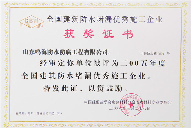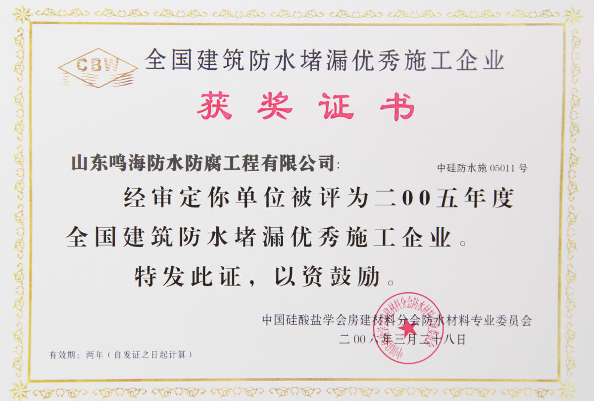 山東鳴海防水集團有限公司是科工貿為一體的綜合性企業,成立于一九九八年,下設三個子公司、一個分公司、五個辦事處,分別為山東宇鳴防水保溫有限公司、威海市鳴海防水材料有限公司、威海宇鳴新型材料有限公司,宇鳴科技有限公司是中國建筑協會理事單位,連年評為企業誠信單位。在全國成立了多個辦事機構,分別為新疆、銀川、蘭州、青海、青島、大連、濰坊、北京等多個城市。